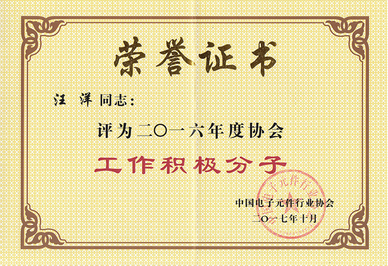南京時恒電子科技公司作為會員代表,很榮幸當選為理事單位,成為“敏感元器件與傳感器分會”成功當選的11名理事單位之一。汪洋總經理還被評為“2016年度協會工作積極分子”。