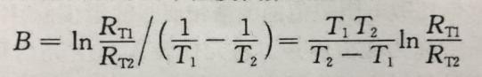 2)材料常數(shù)(熱敏指數(shù)) B值(K):材料常數(shù)是反應熱敏電阻熱靈敏度的指標,通常,該值越大,熱敏電阻的靈敏度和電阻率越高。B值是NTC熱敏電阻的熱敏指數(shù),它被定義為兩個溫度下零功率電阻值的自然對數(shù)之差與兩個溫度倒數(shù)之差的比值