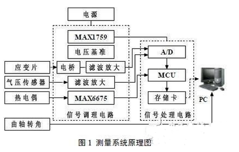 系統(tǒng)由傳感器、電源、信號調(diào)理電路、信號處理電路和PC 機組成在實際測量時,傳感器安裝在運動 件上,由于采用引線裝置傳遞信號會限制機械部件的運動,因此可采用無線收發(fā)電路傳輸數(shù)據(jù),也可采用 存儲方式進行數(shù)據(jù)采集,即先把數(shù)據(jù)保存到存儲卡,數(shù)據(jù)采集完之后再拿出存儲卡讀入到計算機,測量系 統(tǒng)原理如圖1 所示。