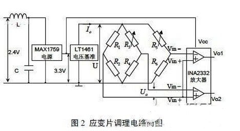 氣壓傳感器和應變片經(jīng)過信號調(diào)理電路輸出0~2.5V 的電壓,可通過信號處理電路把模擬信號轉化為數(shù)字信號再存入存儲卡,熱電偶經(jīng)過信號調(diào)理電路輸出12 位SPI 格式的數(shù)字信號,可由單片機直接 把信號存入存儲卡。存儲卡的容量應能保證采集信號的時間要求(在采集頻率為3000Hz 時,選擇512M以 上的存儲卡可保證采集時間不少于25 分鐘)。而該測量系統(tǒng)中電阻應變片直流電橋測量電路的設計是一 個關鍵,下面我們將對這一部分進行詳細的分析和設計。